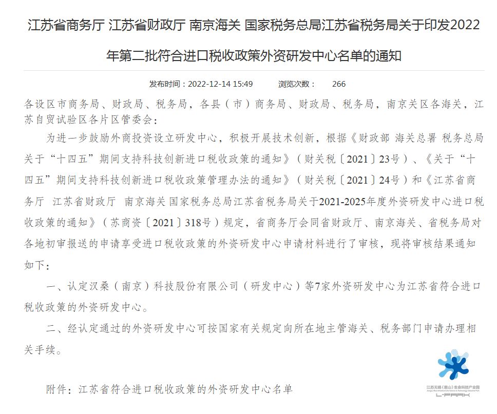 12月14日,江蘇省商務(wù)廳、江蘇省財政廳、南京海關(guān)和江蘇省稅務(wù)局聯(lián)合發(fā)布2022年第二批符合進(jìn)口稅收政策的外資研發(fā)中心名單,全省共7家企業(yè)新獲認(rèn)定,無錫生基醫(yī)藥科技有限公司為本次無錫唯一一家。至此,無錫共有10家外資研發(fā)中心新獲認(rèn)定或通過復(fù)核,其中惠山區(qū)兩家—保諾生物與生基醫(yī)藥,均為惠山經(jīng)開區(qū)生命園企業(yè)。